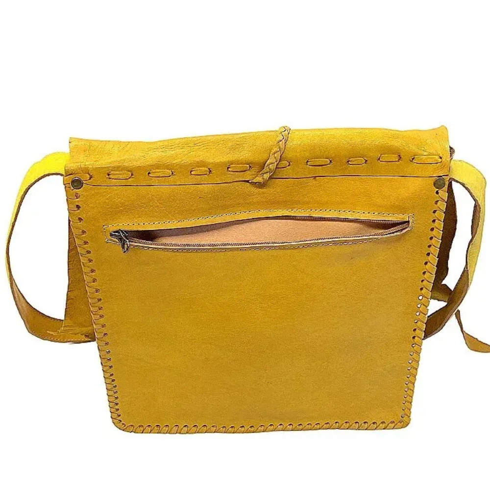 Be the first to review “Moroccan Leather Shoulder Bag – Yellow Live Edge – 35 cm”